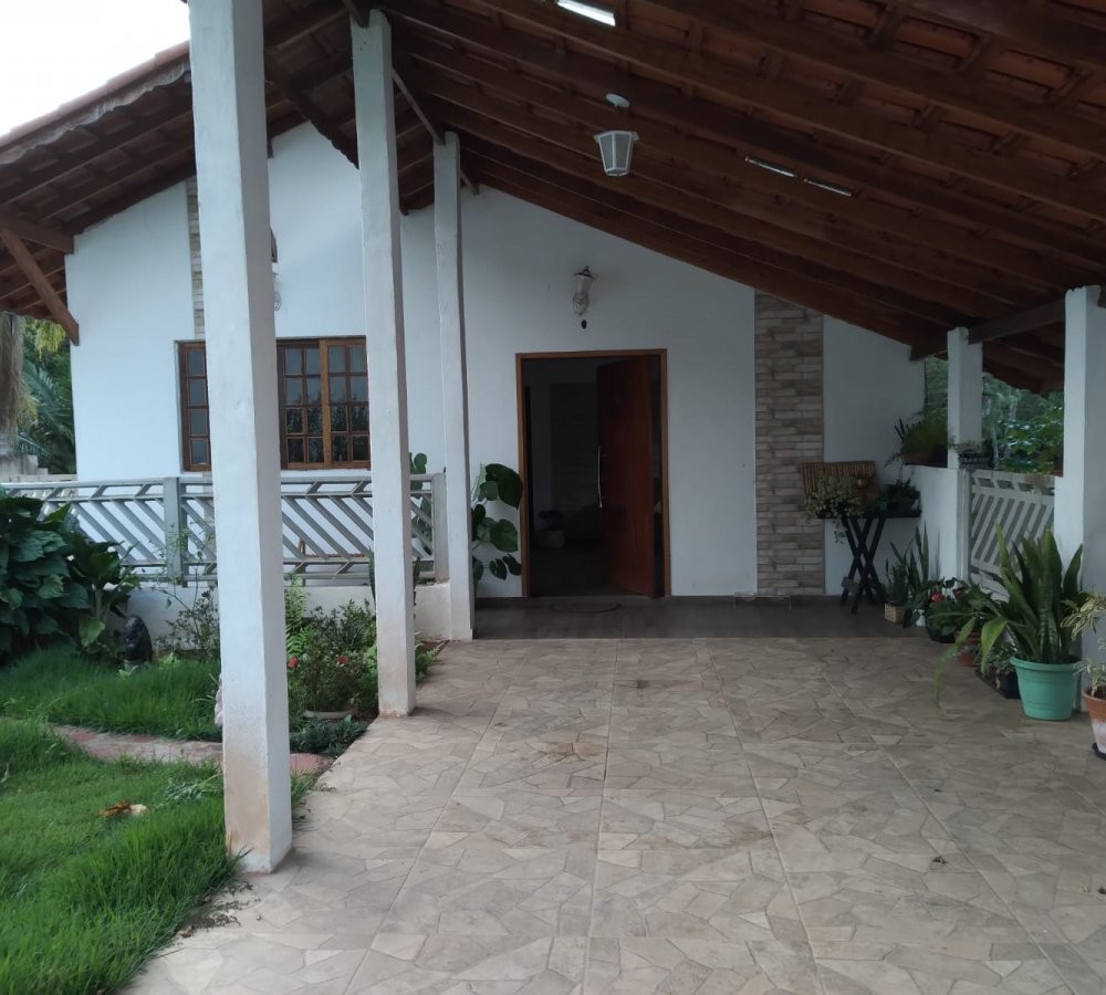 Entrada da casa com garagem coberta